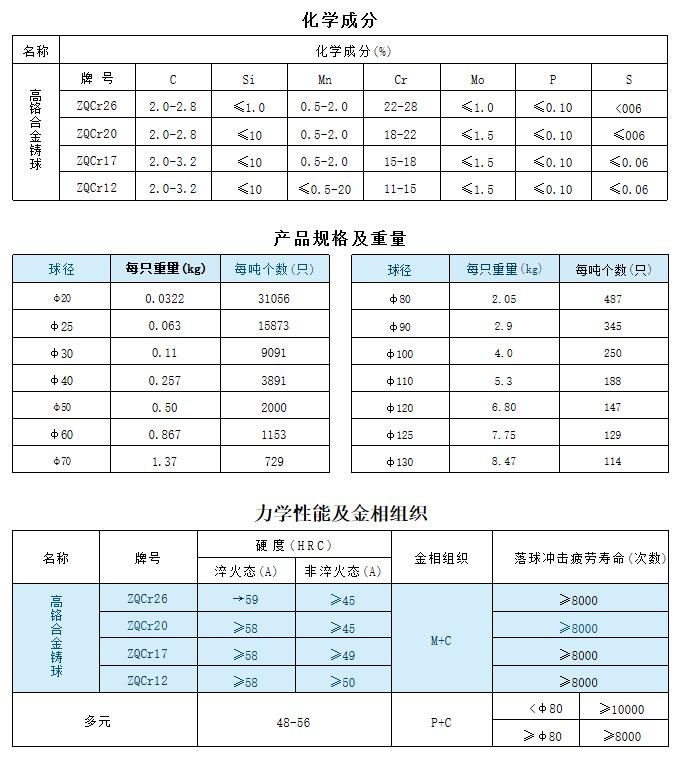 以鉻為主要合金元素的白口鑄鐵簡稱鉻合金鑄鐵,以鉻合金鑄鐵為材料的鑄造磨球稱為鉻合金鑄鐵磨球。